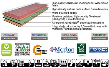 具有极致现代设计风格的软木地板。使用精选的高质量软木颗粒和高耐磨性能的漆面制造而成,使其具有独特的设计纹理。二十个生动的色彩给需要个性鲜明的创意设计提供了充足的资源。 纳米级重装甲陶瓷漆, 微倒角 610 x 380 x 10,5 mm | 1,62 m2每箱
